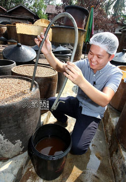 In the mid-1940s, he began to build a home-based soy sauce factory in Sungai Siput, Perak. At first, he had to sell most of the soy sauce tanks to maintain the operating costs of the factory. Relying on a tricycle, he went door-to-door to promote his soy sauce. Along the way, although he met many setbacks, the soy sauce that he crafted was widely acclaimed for being savory.